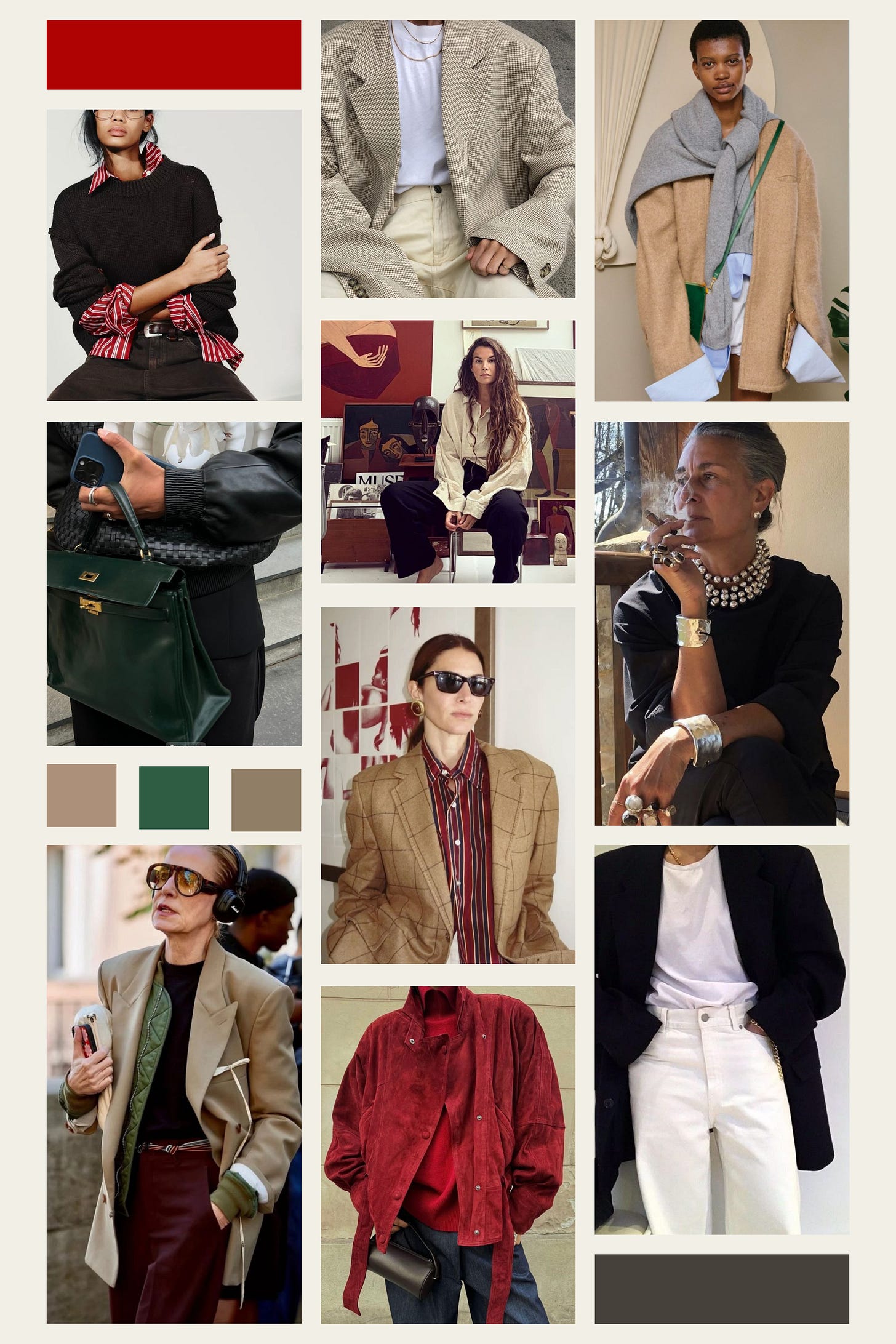 It might sound chaotic, but there’s method in the madness. This is why (to me) styling levers are so helpful. They’re not not static, they move, they eb and flow, and they offer space for creativity as opposed to stifling it. (I don’t think i’m ever going to be someone who wants or needs my style to fit in a neat and tidy box.) 2025 was the year I got back to my roots, my inner artist, and i’m finding that’s also coming through in how I want to dress. I think it’s coming across more so in the details - how I do my hair and makeup and little stylistic choices that add a little playfulness to my everyday looks. All of the above juxtaposed with an air of the unapologetic, which to me is Patsy from Absolutely Fabulous, arguable one of the best UK 90’s comedies for fashion lovers. While I don’t think i’ll be wearing a beehive anytime soon, I’ve always admired her two piece Chanel suits and her commitment to being dressed up for herself. To being fabulous for no reason other than she could. I love the idea of pulling both of these levers to varying degrees depending on my mood on any given day.